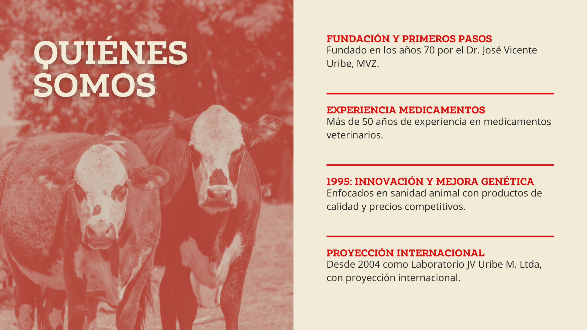 Laboratorio J.V Uribe, produce productos farmacéuticos de alta calidad y efectividad dirigidos al sector agropecuario para Bovinos, Equinos, Porcinos, Caprinos y Ovinos.